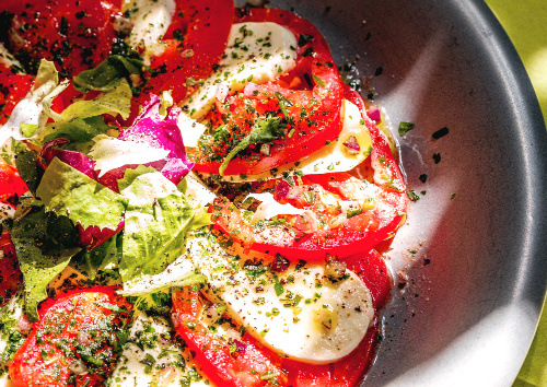 - 샐러드: 토마토, 모차렐라 치즈, 바질을 곁들여 카프레제 샐러드를 만든다.