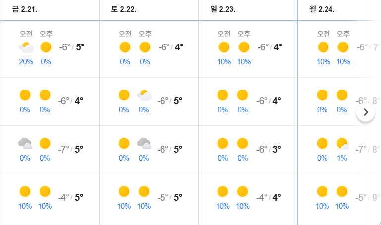 대구 국제마라톤2월 23일(일) 날씨예보
