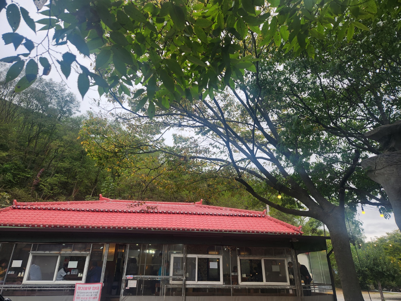 식당 입구에 큰 간판이 우뚝 서 있답니다..