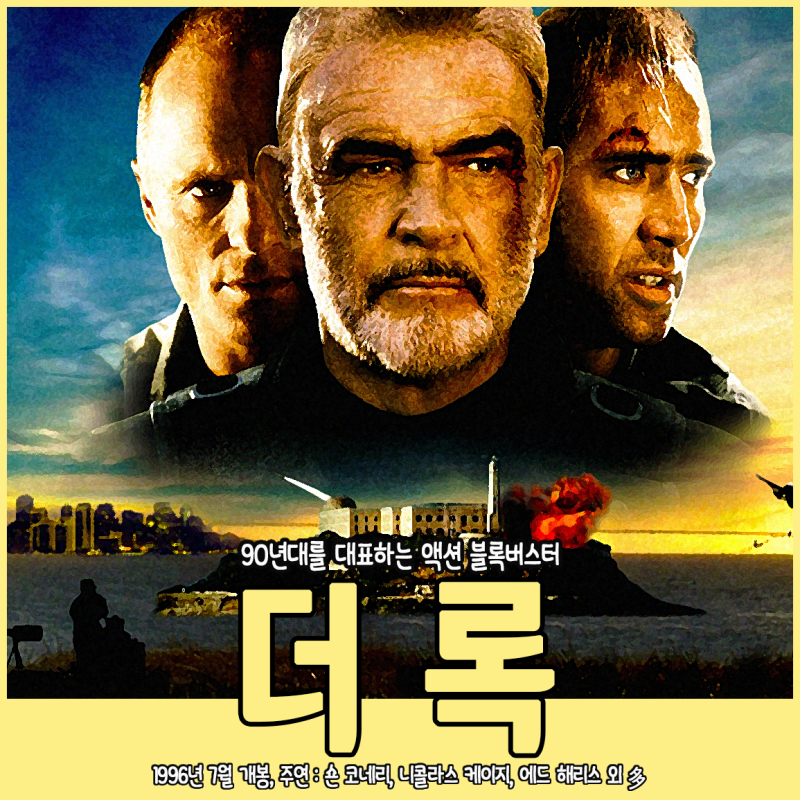 더록(The Rock)은 1996년에 개봉한 액션 스릴러 영화로, 감독은 마이클 베이, 주연은 숀 코너리, 니콜라스 케이지, 에드 해리스가 맡았습니다. 이 영화는 샌프란시스코의 알카트라즈 섬을 배경으로 하며, 범죄자들이 인질극을 벌이는 과정을 중심으로 전개다.