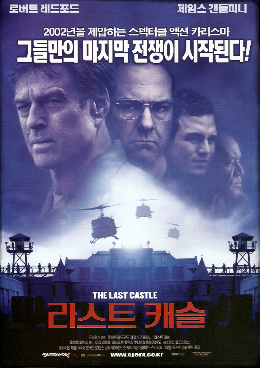 라스트 캐슬(2001)은 군법정 장군 유진 어윈(로버트 레드포드 분)이 군 교도소에 수감되어 부패한 교도관 대령에 맞서 반란을 일으키게 되는 이야기를 그린 드라마 영화이다. 겨울(제임스 갠돌피니 분). 영화의 결말은 명예, 희생, 구원에 대한 강력한 메시지를 전달한다.