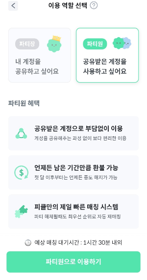 월 4,740원(파티장), 월 5,240원(파티원)이면 가능