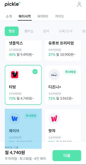 티빙요금체 최대 73%까지 할인 가능한 피클클러스 사이트에서 계정 공유하는 법